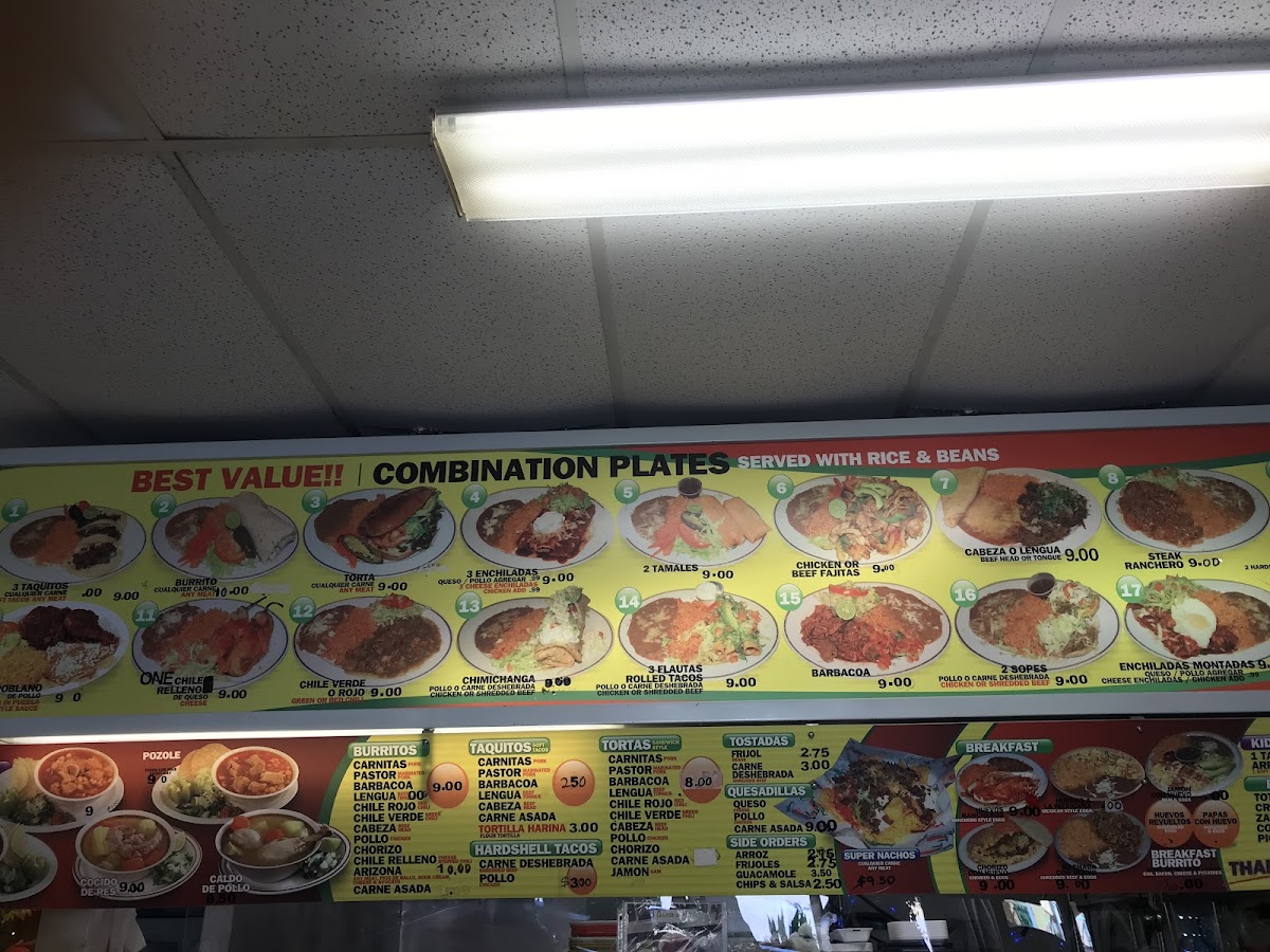 “ Loved their food! Had a carne asada burrito, didn't seem like much but the taste was amazing! Very friendly staff and clean place. My husband had a chorizo with egg burrito and said it was the bomb! Will definitely visit again, gotta try their tacos and tortas. The place was a bit hard to find since it's in a little mercado (shopping center) type of place, but if you go in from the library side it's on the left hand side, you can't miss it it has lots of decor outside the restaurant. ”